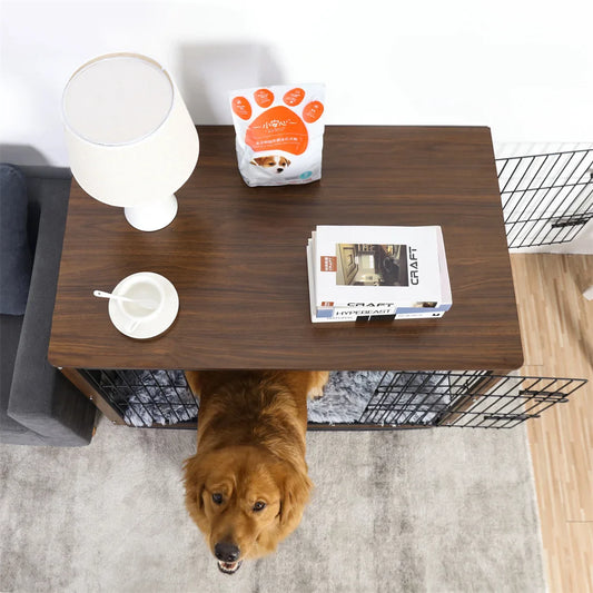 High-End Wooden Dog Crate - Indoor Pet Kennel and End Table, Brown Furniture Style Cage